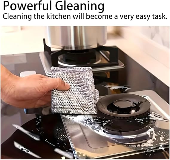 These steel mesh cleaning cloths are a must-have for every kitchen. They provide better grip, remove tough stains effortlessly, and are reusable for long-term use. Perfect for daily dishwashing or deep cleaning tasks, they make your kitchen sparkling clean with less effort.
