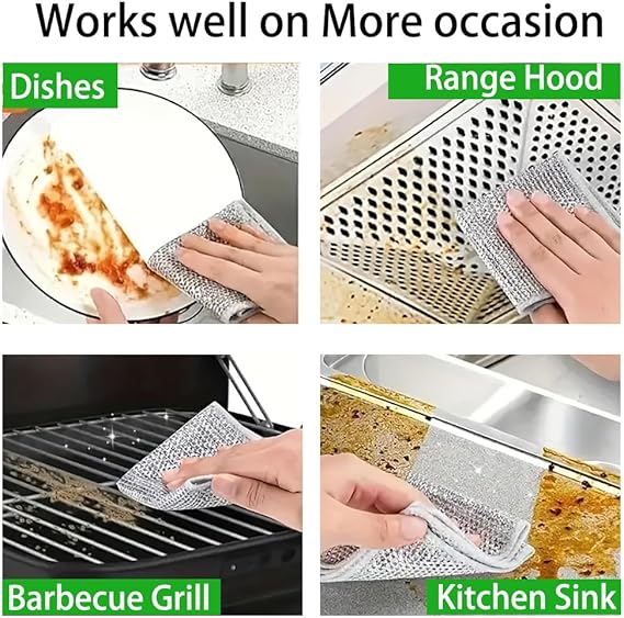 These steel mesh cleaning cloths are a must-have for every kitchen. They provide better grip, remove tough stains effortlessly, and are reusable for long-term use. Perfect for daily dishwashing or deep cleaning tasks, they make your kitchen sparkling clean with less effort.